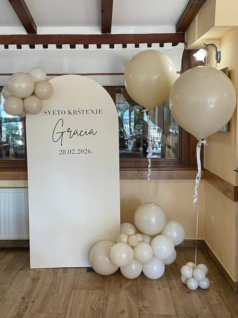 Tražite li savršene dekoracije od balona za posebne prigode poput rođendana, krštenja ili prve pričesti? Naša kolekcija balonskih dekoracija dodat je to što trebate za vašu proslavu. Bez obzira slavite li prvi ili petdeseti rođendan, naši baloni osigurat će odličnu atmosferu i savršene fotografije. Pogledajte galeriju naših dekoracija od balona u obliku pozadina za fotografiranje s personaliziranim natpisima.