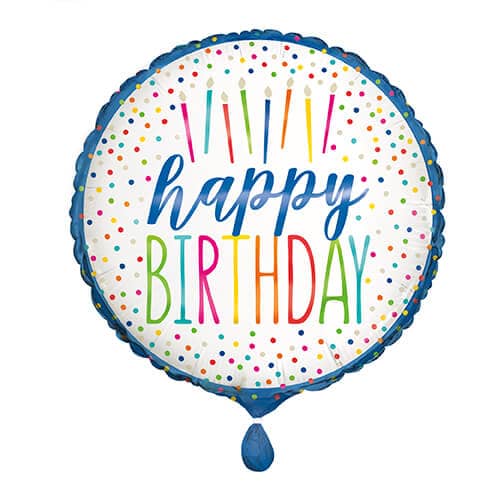 Savršeni šareni folija balon s točkicama i svječicama i natpisom HAPPY BIRTHDAY. Prigodan balon za rođendansko slavlje!