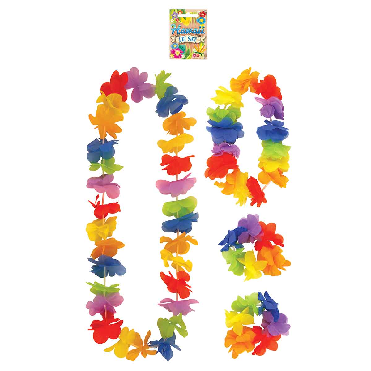 Divan hawai set od: ogrlice, narukvica i ukrasa za kosu s motivom šarenih cvjetića dati će posebnu čar zabavi. Ovo je sve što Vam je potrebno za hawai zabavu.
