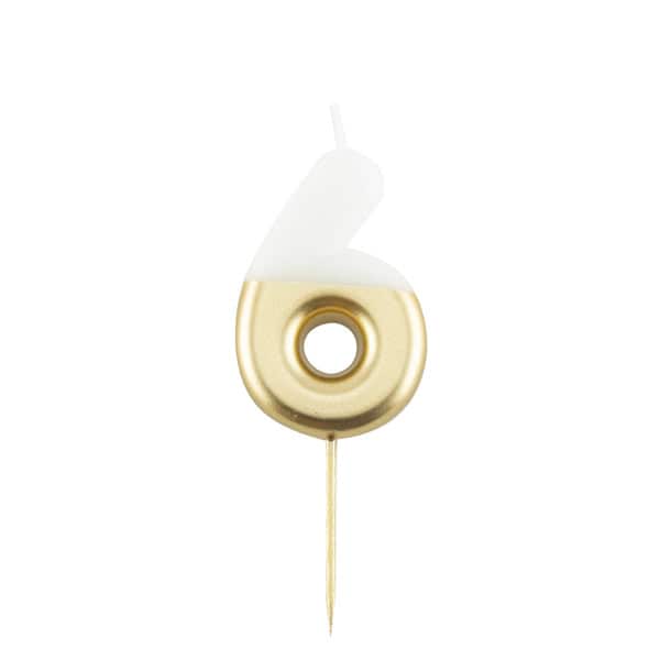 Rođendanska svjećica broj 6, bijelo/zlatna
