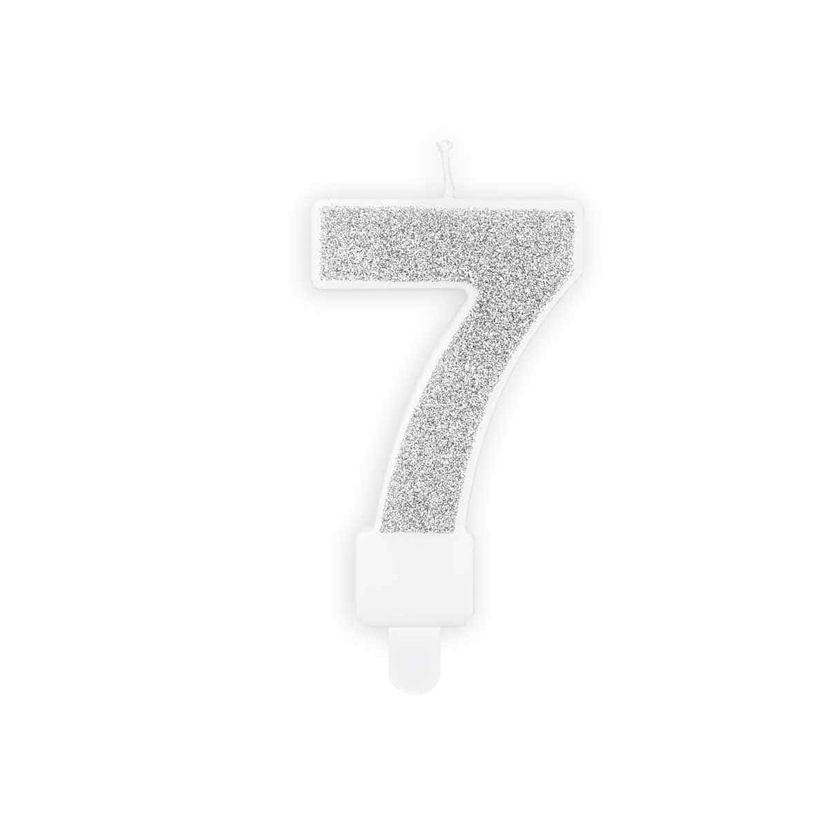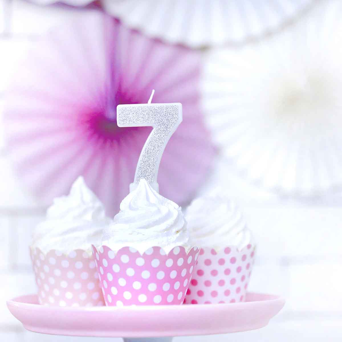 Dodajte ovu predivnu svjećicu srebrne boje sa šljokicama rođendanskoj torti te izmamite osmijeh osobi na njezin poseban dan kako biste stvorili prelijep efekt. Predivna šljokičasta svjećica s brojem 7.
