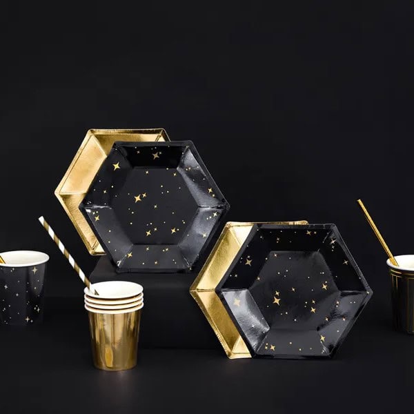 Ovi predivni crni papirnati tanjuri s zvjezdama dati će posebnu notu svakoj proslavi.