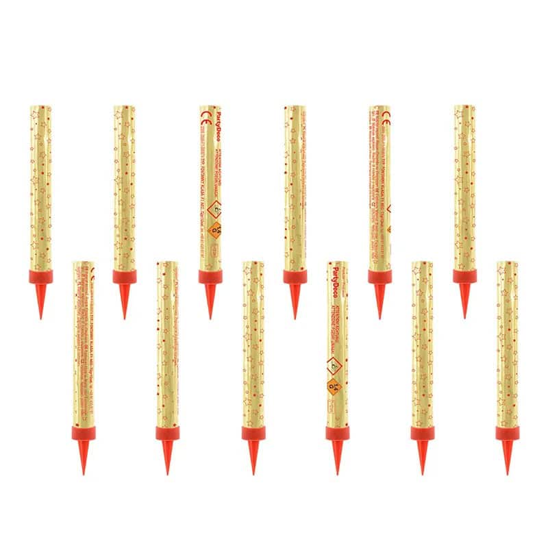 Tortne fontane u velikom pakiranju idealan su dodatak za svečane torte, pružajući spektakularan vizualni doživljaj na proslavama poput rođendana, vjenčanja ili godišnjica. Ove zlatne prskalice s crvenim zvjezdicama stvaraju čarobnu atmosferu, a njihovo trajanje od 45 sekundi omogućuje dovoljno vremena za pjesmu “Sretan rođendan” ili svečano unošenje torte.