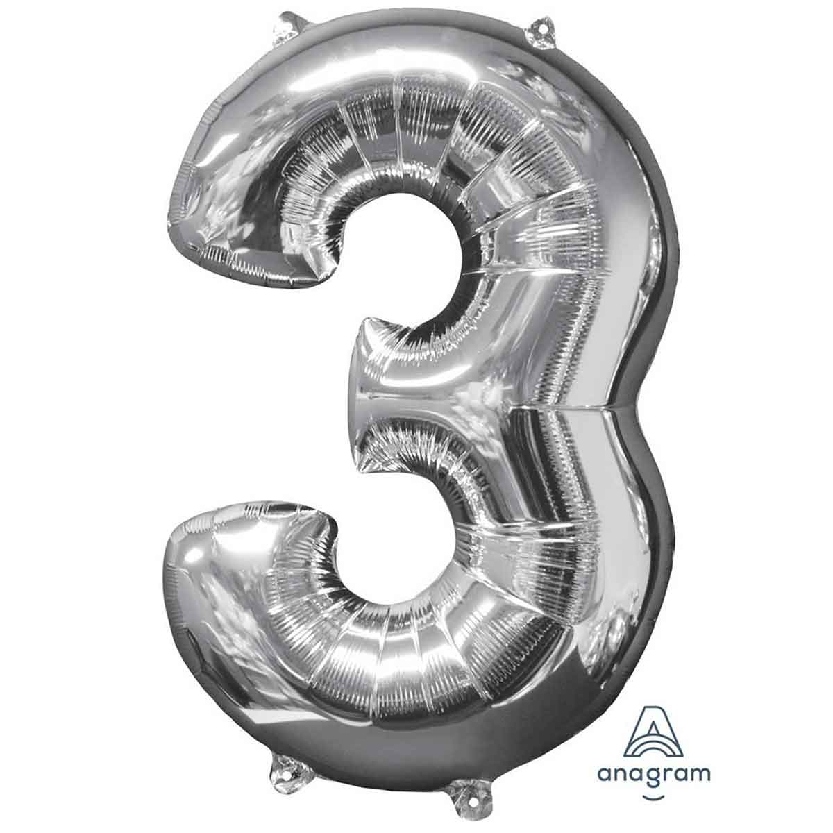 Veliki srebrni folija balon broj”3″ neizostavan su dio svakog rođendanskog tuluma i fotografija. Može biti kao samostojeća dekoracija punjena helijem ili zrakom, a može se složiti u bogati kup balona s prigodnim tiskom.